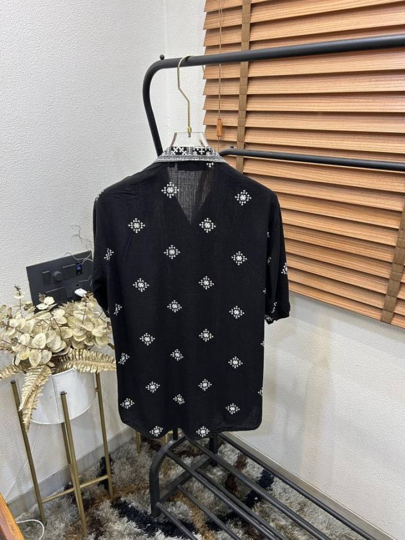 Amir_i Ajrakh Printed Turkey Imported Very Premium Linen Half Shirt (DN 519)