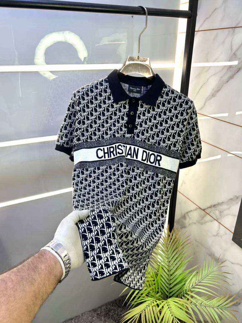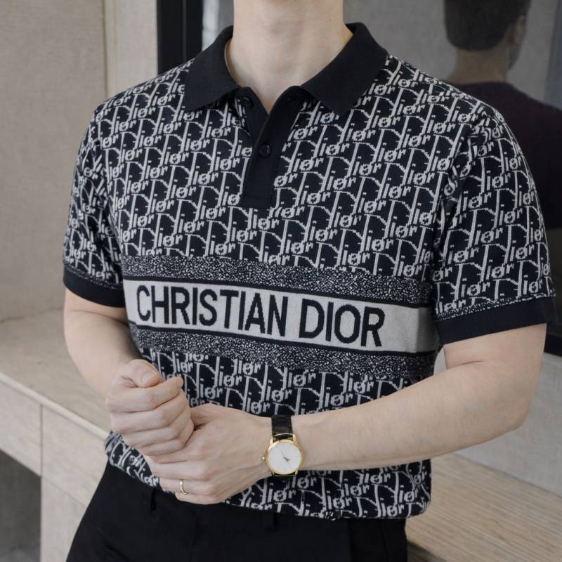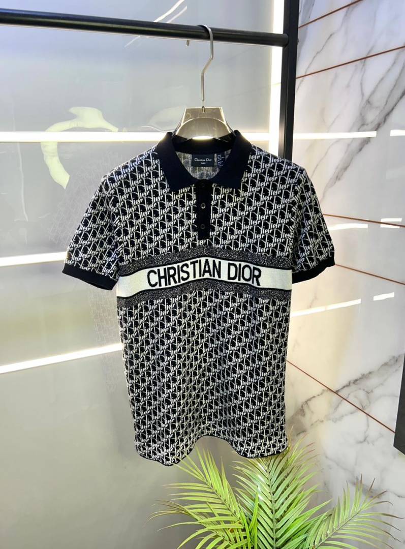 Christian Dio r Imported knitted Monogram Super Premium Black Collar Neck Polo T-shirt F3481-BL