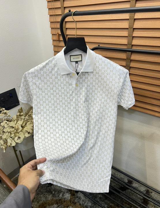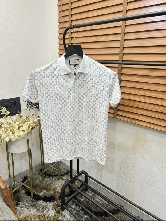 Gucc_i All Over Velvet Monogram Embossed Imported Jersey Lycra Polo T-shirt