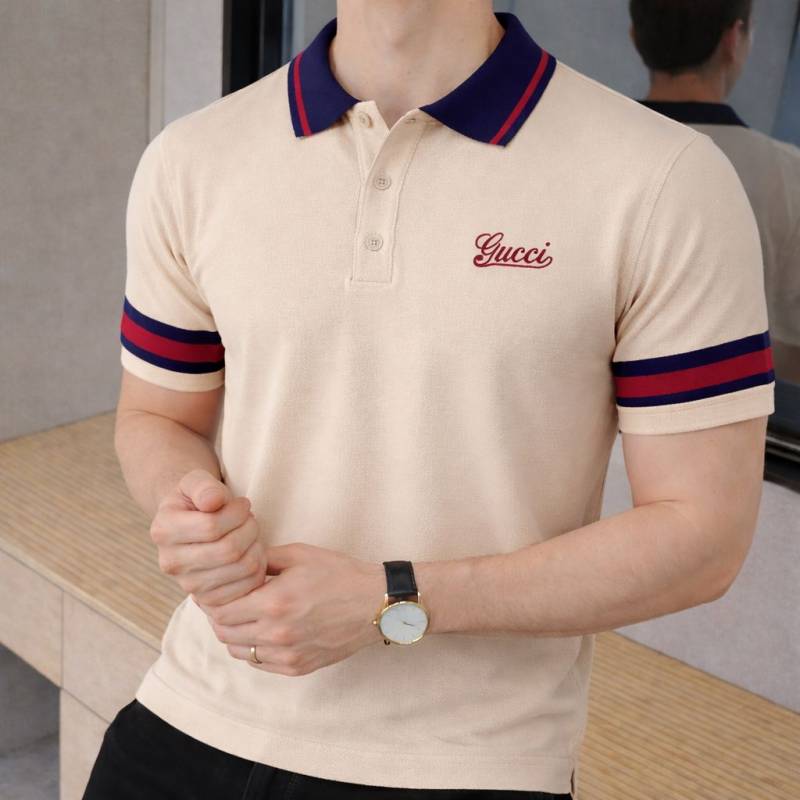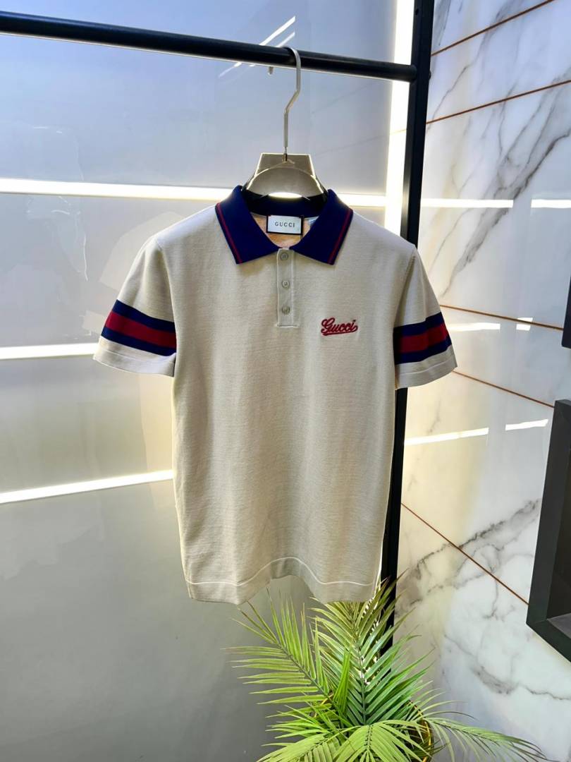 Gucc i Cream Imported knitted Premium Collar Neck Polo T-shirt F3557-CR