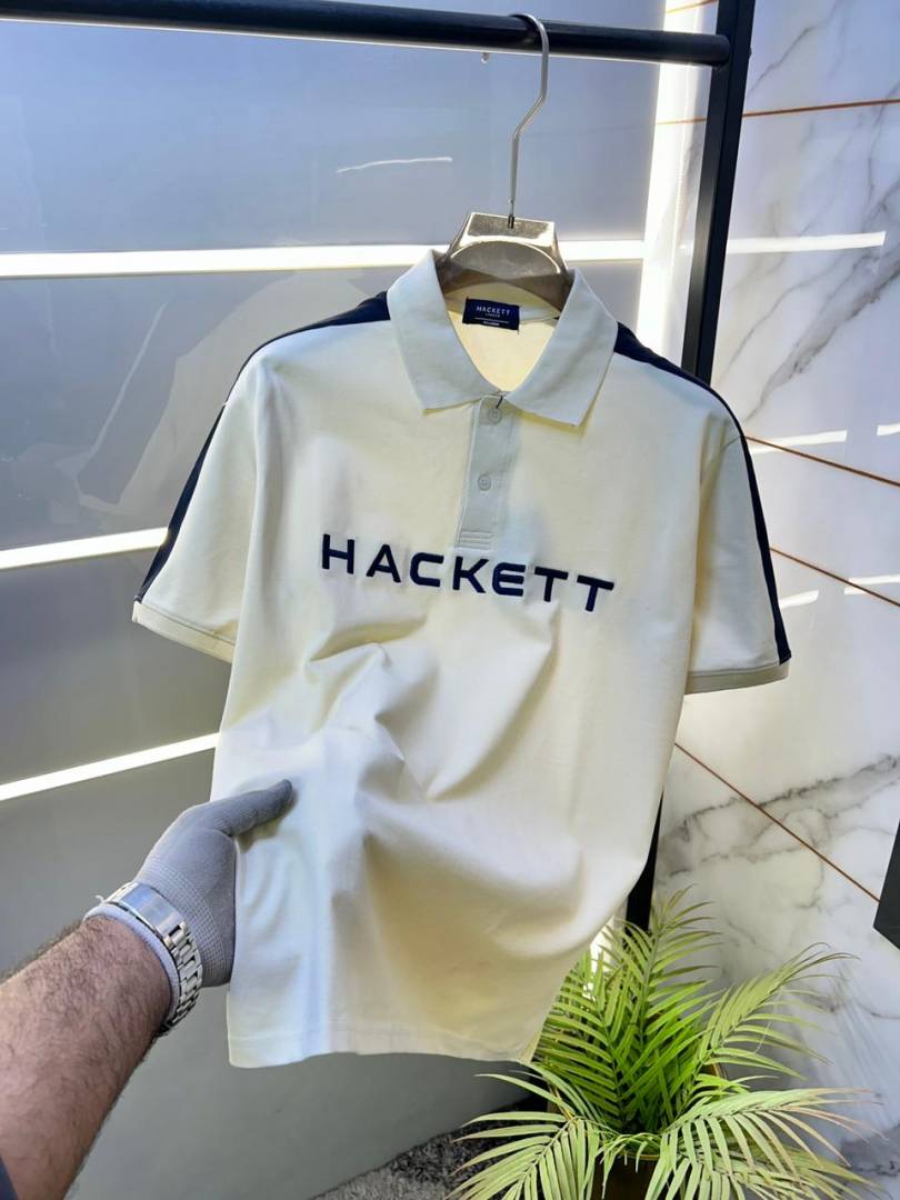 Hacket t London Cream Embroidery Print Collar Neck Premium Polo T-shirt F2794-CR