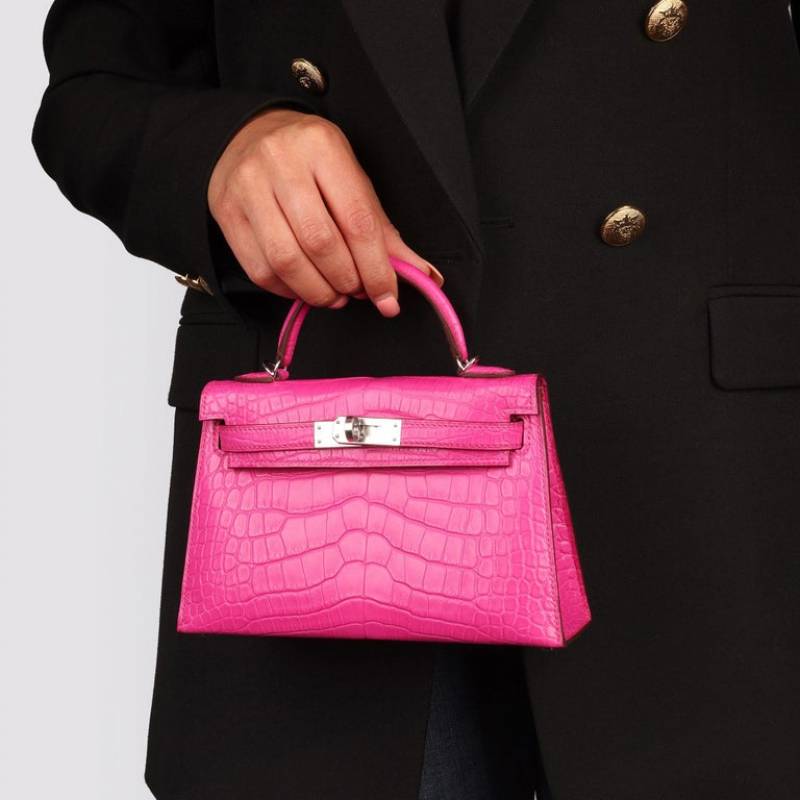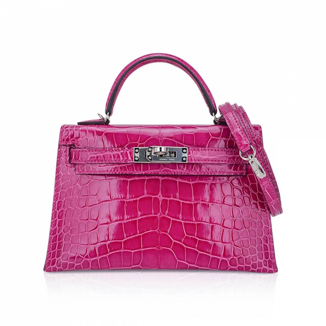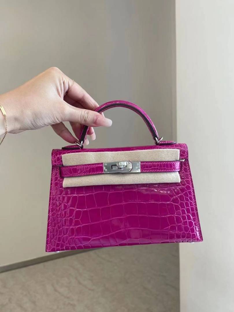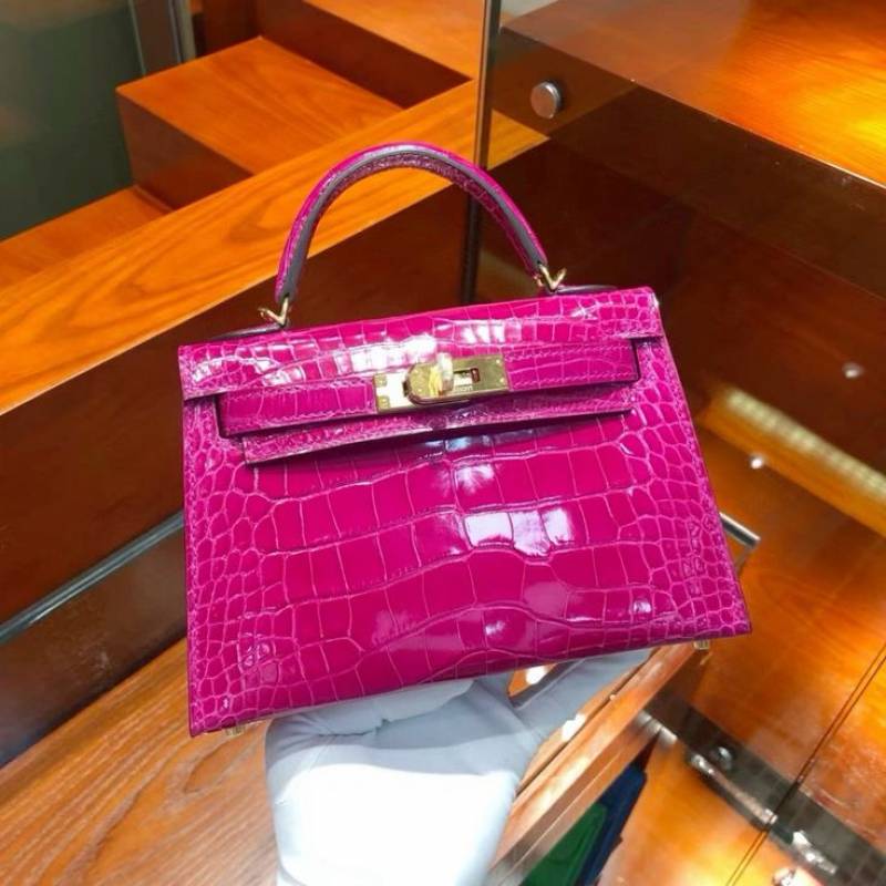 Hermes kelly 22 Rose Scheherazade alligator crocodile Leather orange Sling Bag With Original Box And Carry Bag-(1078)