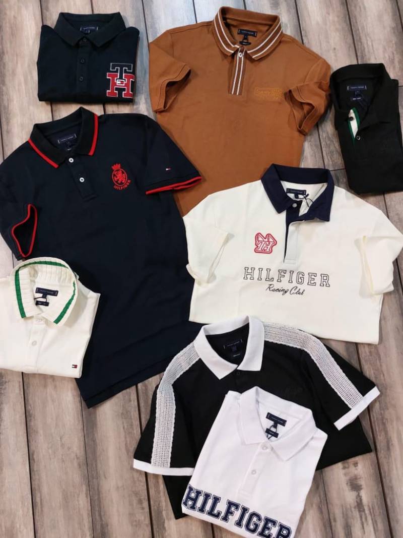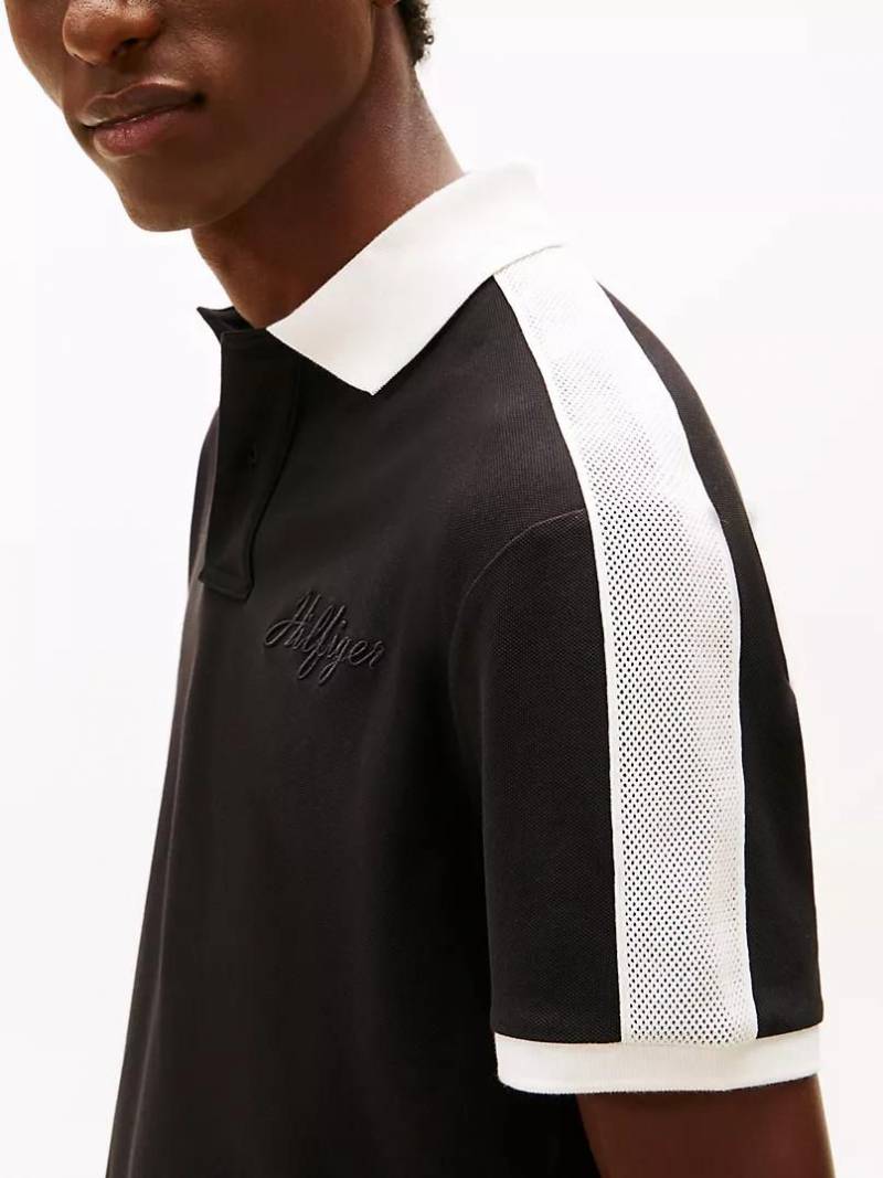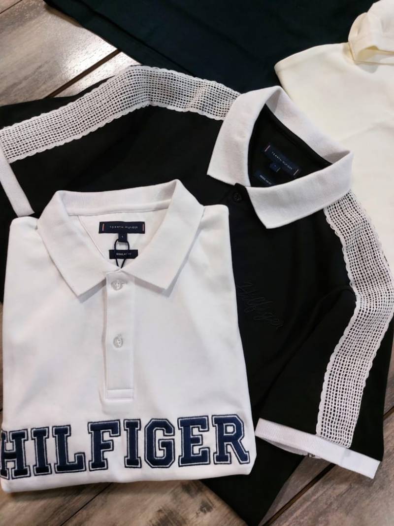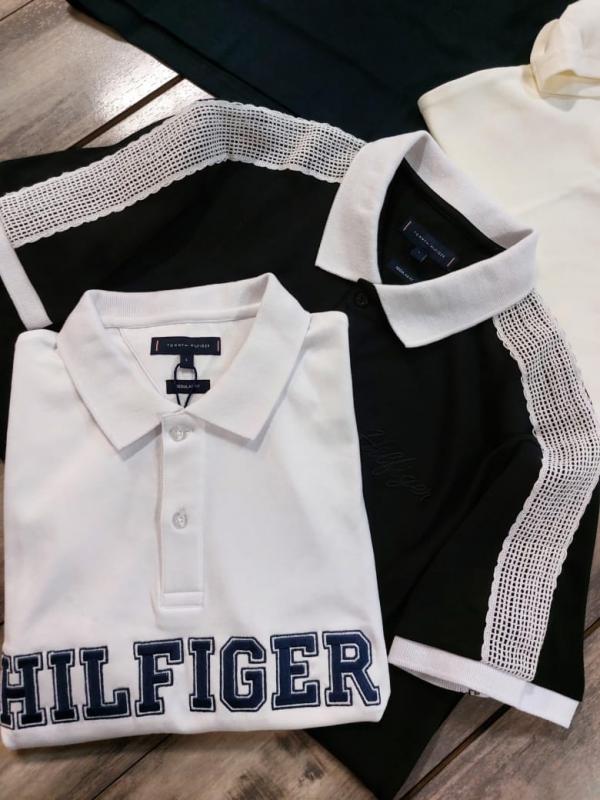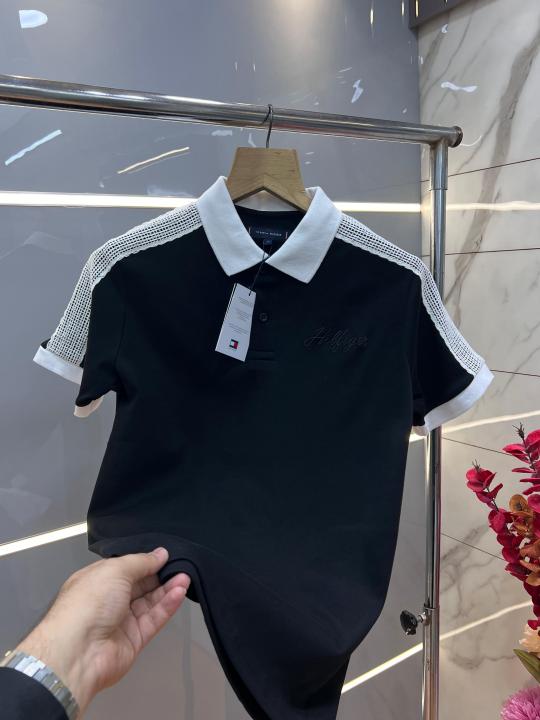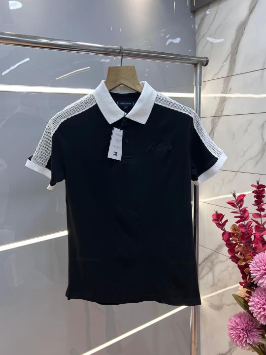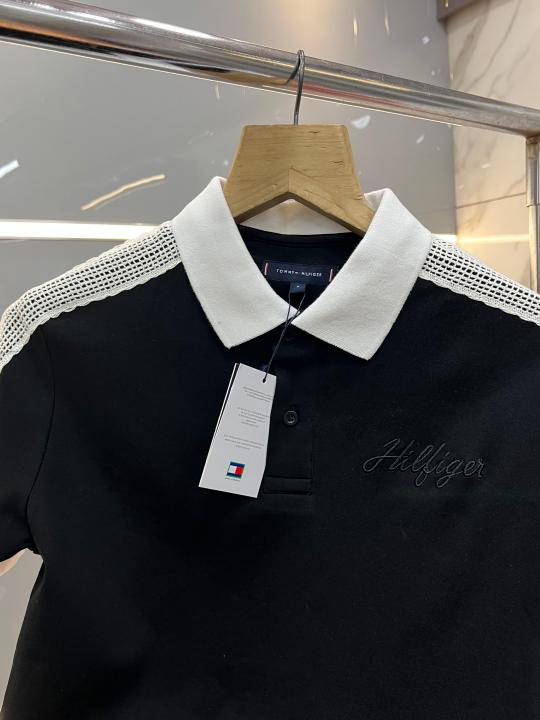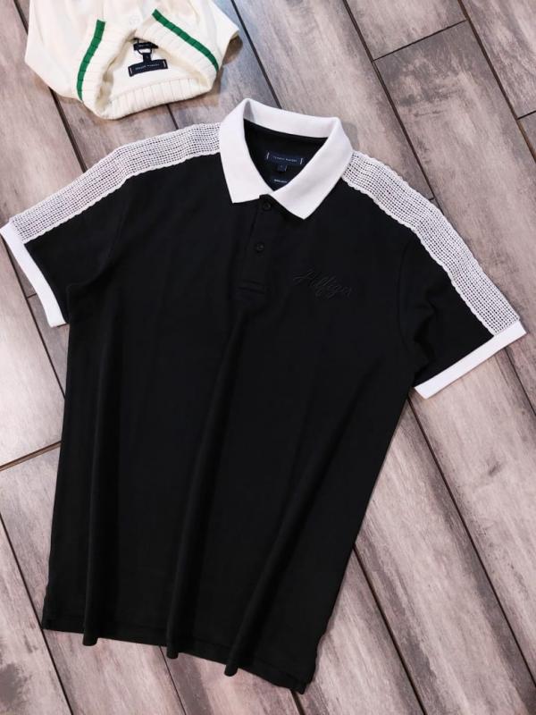 Tommy Hilfige r Black Premium 240 gsm interlock compact cotton fabric Polo Tshirt with Shoulder Design and Embroidered Logo 3471