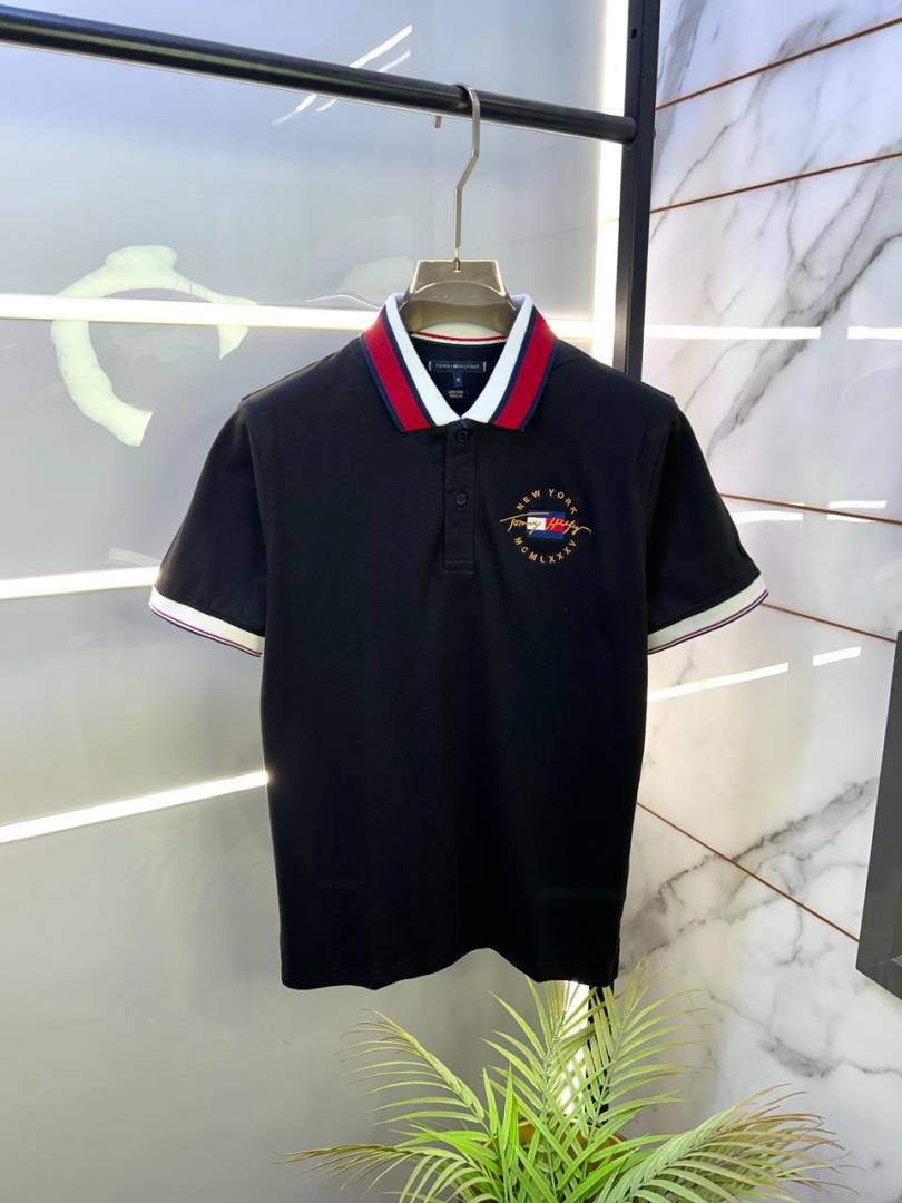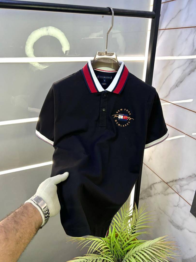 Tommy_Hilfiger Black Embroidery Logo Collar Neck Premium Polo T-shirt F2804-BL