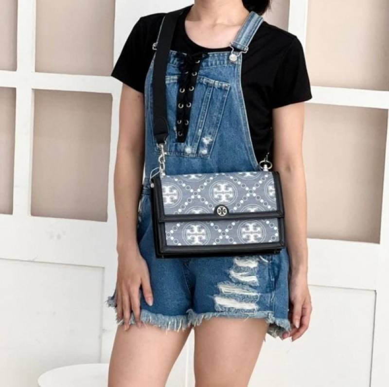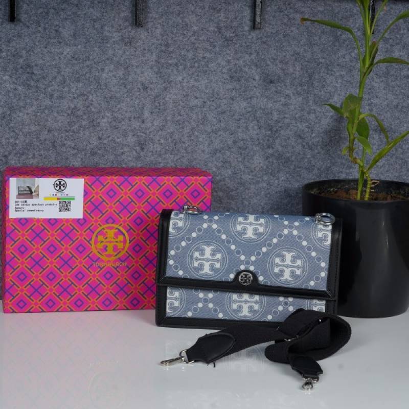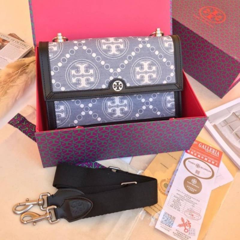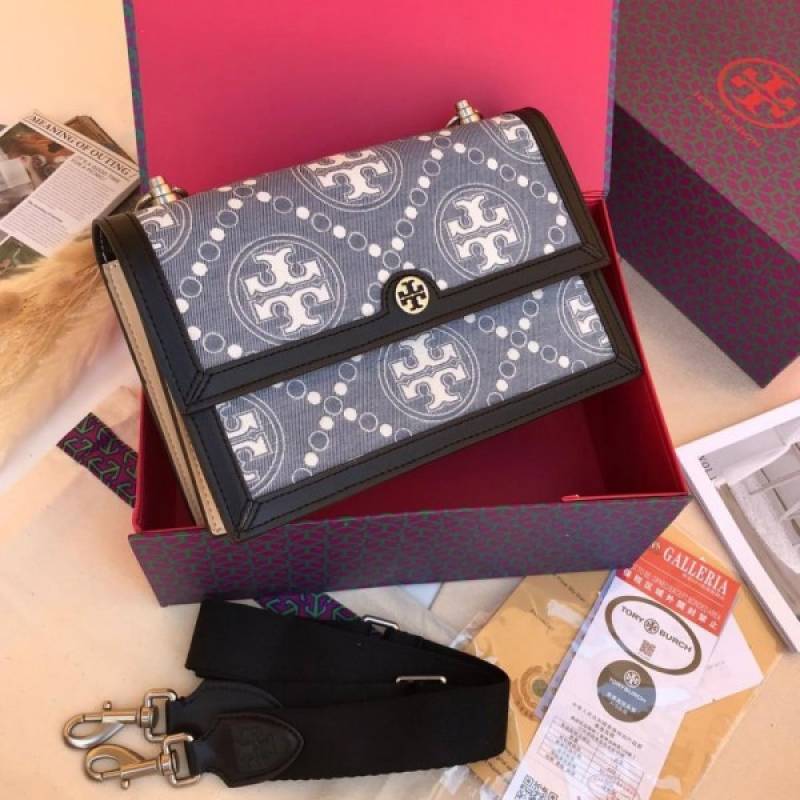 Tory_Burch_T Monogram Shoulder Bag With Adjustable Strap With OG Box & Dust Bag (Black - 616)